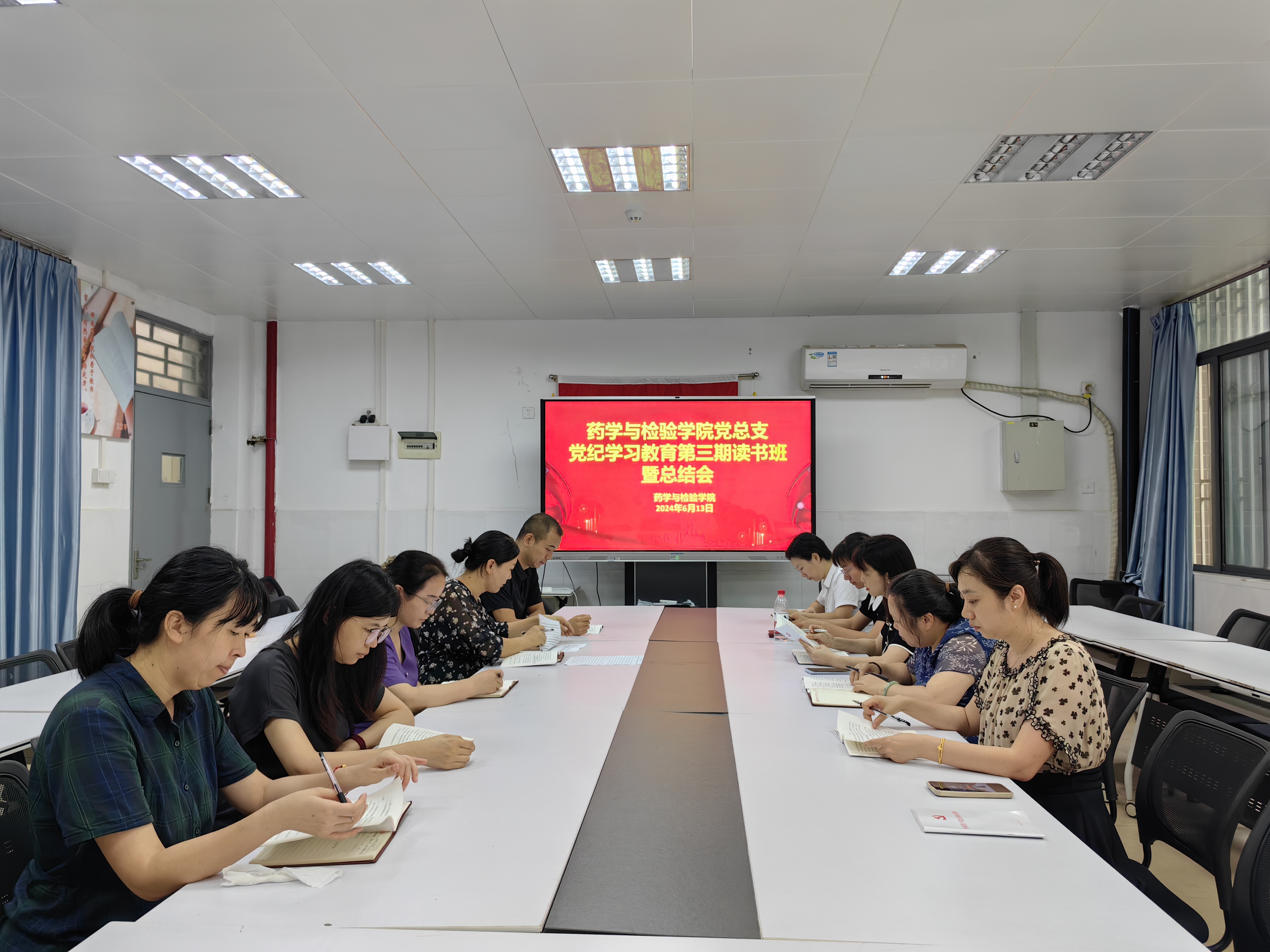 6月13日,药学与检验学院领导班子、党总支及支部全体支委在药学楼212召开第三期党纪学习教育读书班暨党纪学习教育总结会。本次学习的主要内容为《中国共产党纪律处分条例》第9章至第11章,由药学党支部书记陈善娟领读。党总支副书记李奕、药学党支部宣传委员蔡天舒、检验技术党支部宣传委员靖吉芳分别结合工作实际,发表了自己的学习心得。最后,党总支书记梁可就读书班活动进行了总结,梁可书记指出,读书班结束了,但党纪学习教育没结束,应让心存敬畏、手握戒尺真正成为党员干部们的日常自觉,要求各党员干部:一是要以更高站位认清党纪学习教育的重大意义,二是要以更高标准抓好深化学习,三是要以更实措施推进工作落地,四是要以更严要求强化示范带头。(药学与检验学院党总支)