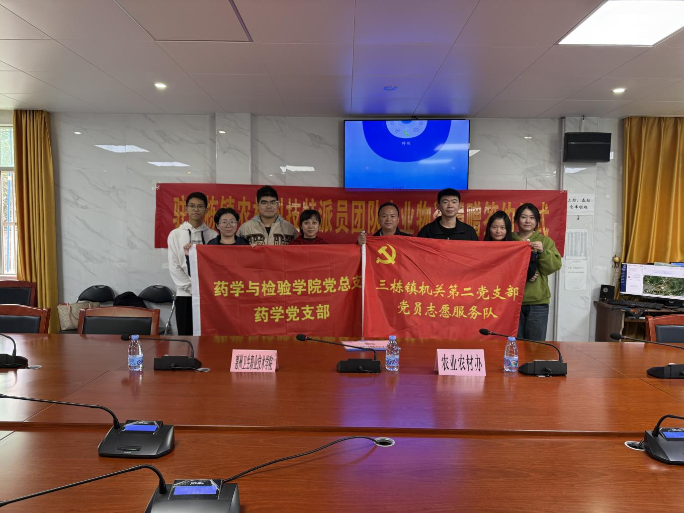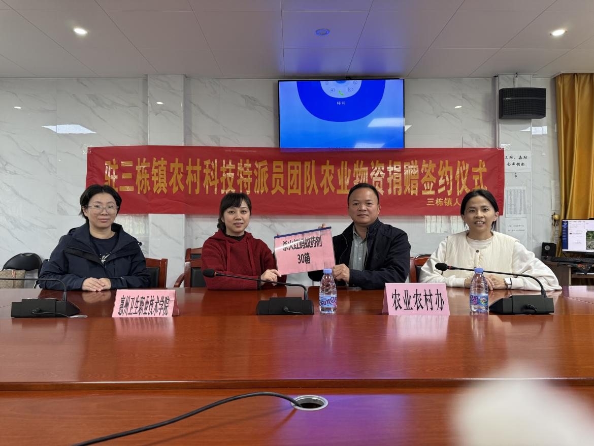 12月26日,我校药学党支部与惠城区三栋镇机关第二党支部联合开展党建共建活动,通过工作交流和经验分享,推动党建与业务相融互促,助力乡村振兴焕发生机活力。活动现场,支部驻三栋镇农村科技特派员团队与三栋镇农业农村办签署农业物资捐助协议书,向三栋镇人民政府捐赠杀火红蚂蚁药剂30箱(折合人民币6600元),专项用于开展三栋镇“百千万工程”领域项目活动。