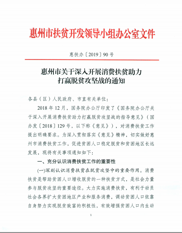 惠州市关于深入开展扶贫助力打赢脱贫攻坚战的通知