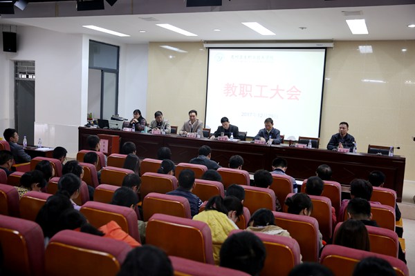 2017年12月29日,我院在图书馆一楼多功能报告厅召开全体教职工大会,审议2017年经费使用情况和中层干部选聘及考核工作。学院党政领导班子成员和全体教职员工出席了大会。大会由张彬祥副院长主持。