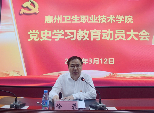 会上,肖剑院长表示,2月20日中央召开了党史学习教育的动员大会,2月23日广东省召开了全省党史学习教育动员会,3月3日惠州市委召开了动员部署会,3月5日广东省委教育工委召开了全省教育系统党史学习教育动员大会,3月11日惠州市委教育工委、市教育局召开了党史学习教育动员大会。从中央、省、市到教育主管部门都已经相继召开了动员大会,今天我们召开动员大会,是贯彻落实上级动员会议精神,部署我们学校党史主题教育的重要会议。肖剑院长传达学习了广东省委和惠州市委关于党史学习动员大会的会议精神,深入学习贯彻省委书记李希同志和市委书记胡洪同志的动员讲话精神。
